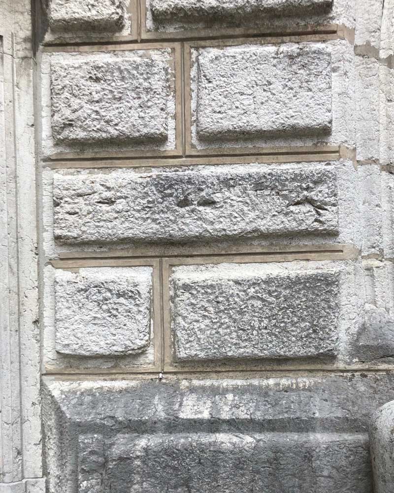 Stil- und Materialgerechte Restaurierung der Mauerwerksfugen. Vergleich vorher | nachher.